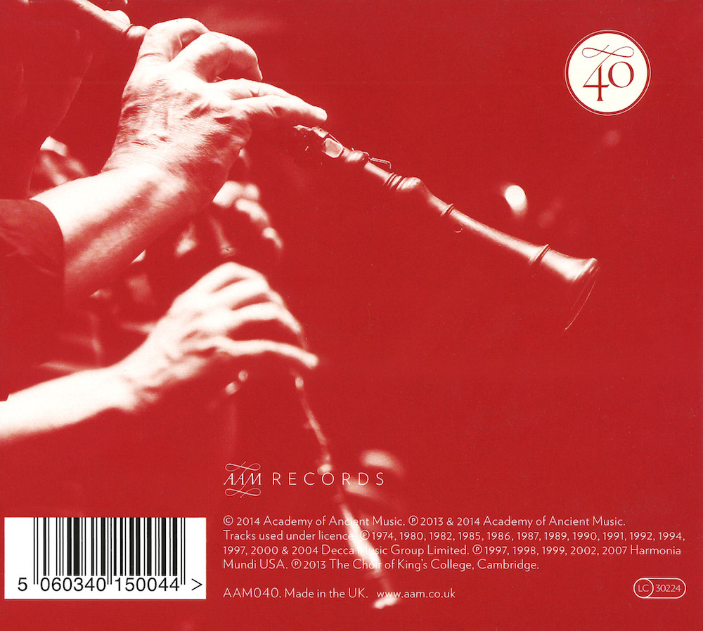 We are delighted to release this limited edition CD to celebrate 40 years of the Academy of Ancient Music. We hope you enjoy listening to it as much as we have enjoyed the forty years of music making it represents.